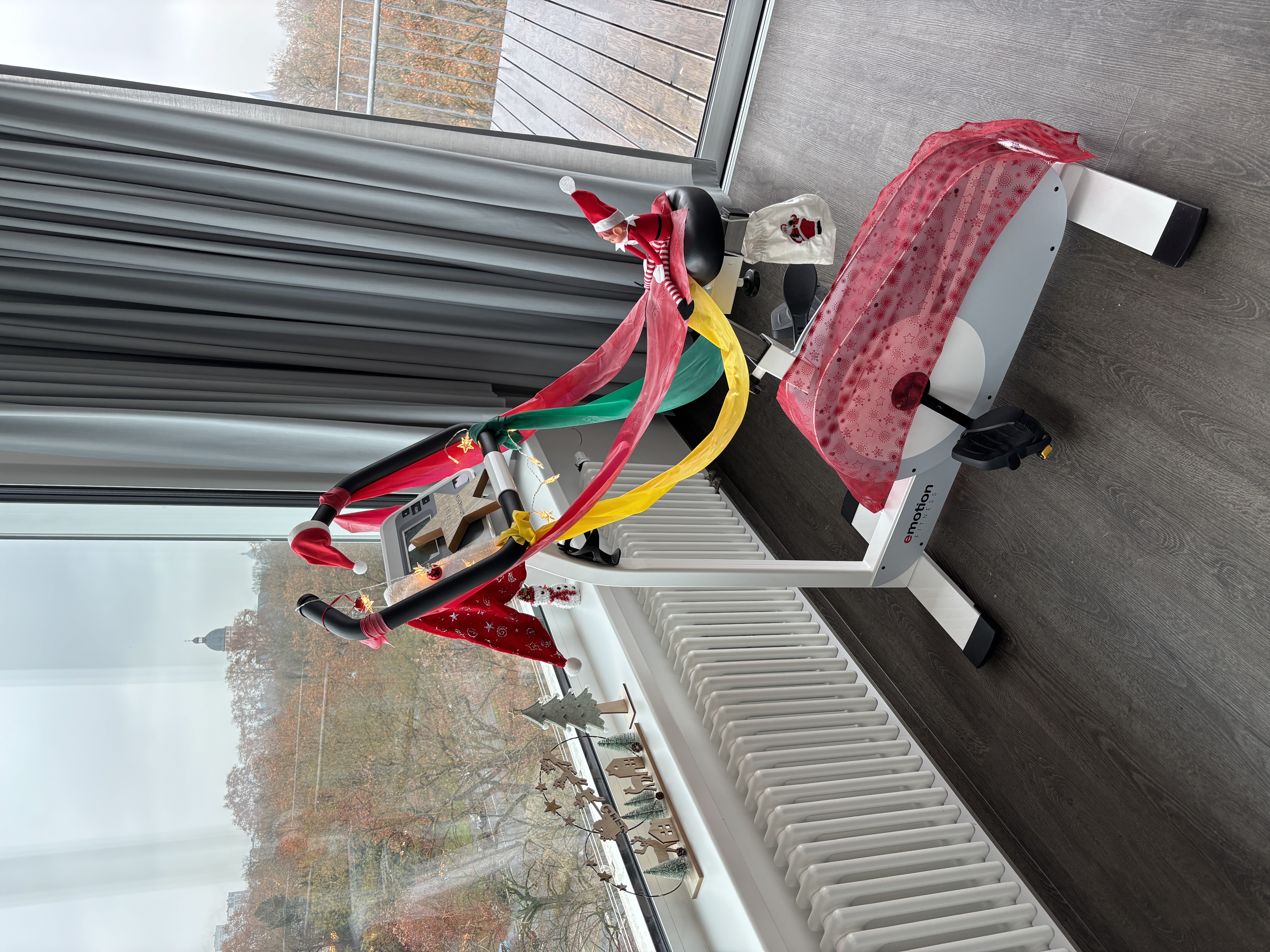 Run, Run Rudolph! Maggie hat im fünften Stock des @marienhausklinikummainz die Geriatrische Reha Mainz gefunden und direkt mal ein Ergometer gekapert. Eigentlich wollte sie ursprünglich ein wenig strampeln, um für ihre weihnachtlichen Aufgaben fit zu bleiben. Aber irgendwie waren ihre Beine dafür dann doch etwas zu kurz.
